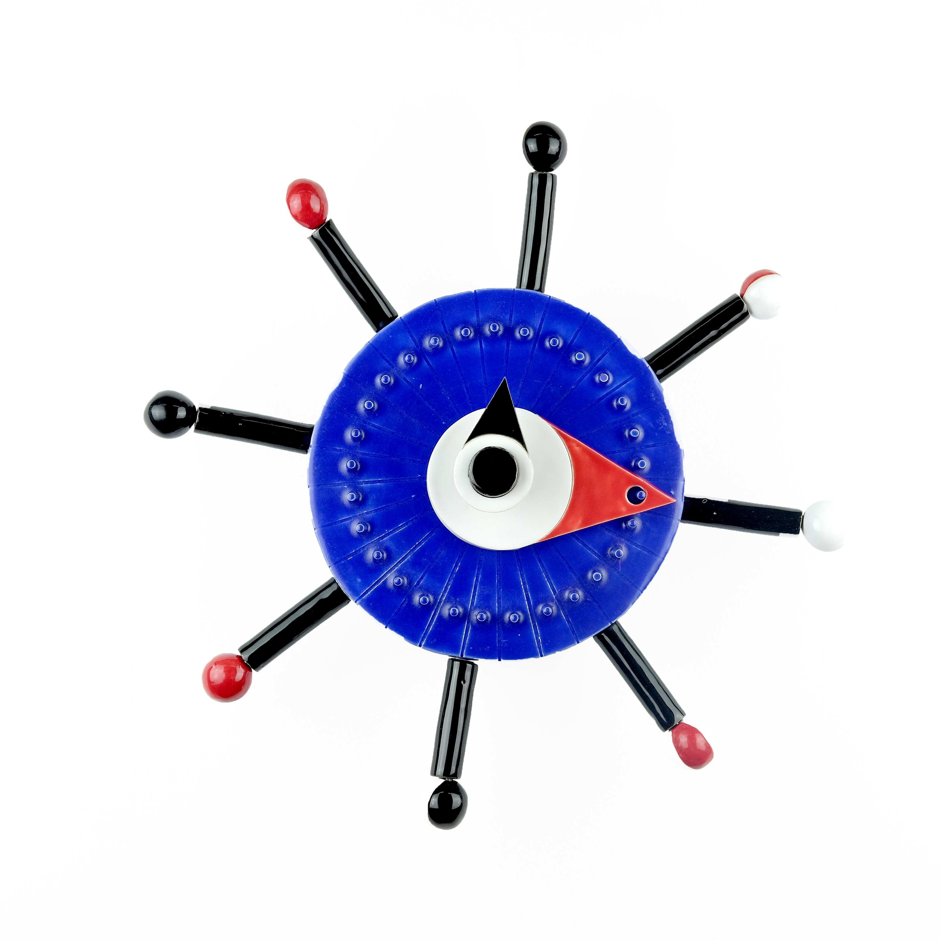Glazed and fired ceramic with an internal stainless steel cog, and base.